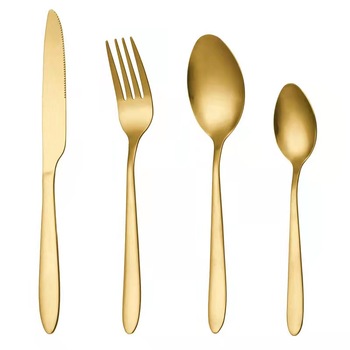 Juego de cubiertos dorados de acero inoxidable 18/8 para boda, cuchara, tenedor y cuchillo, cubiertos dorados, cubiertos